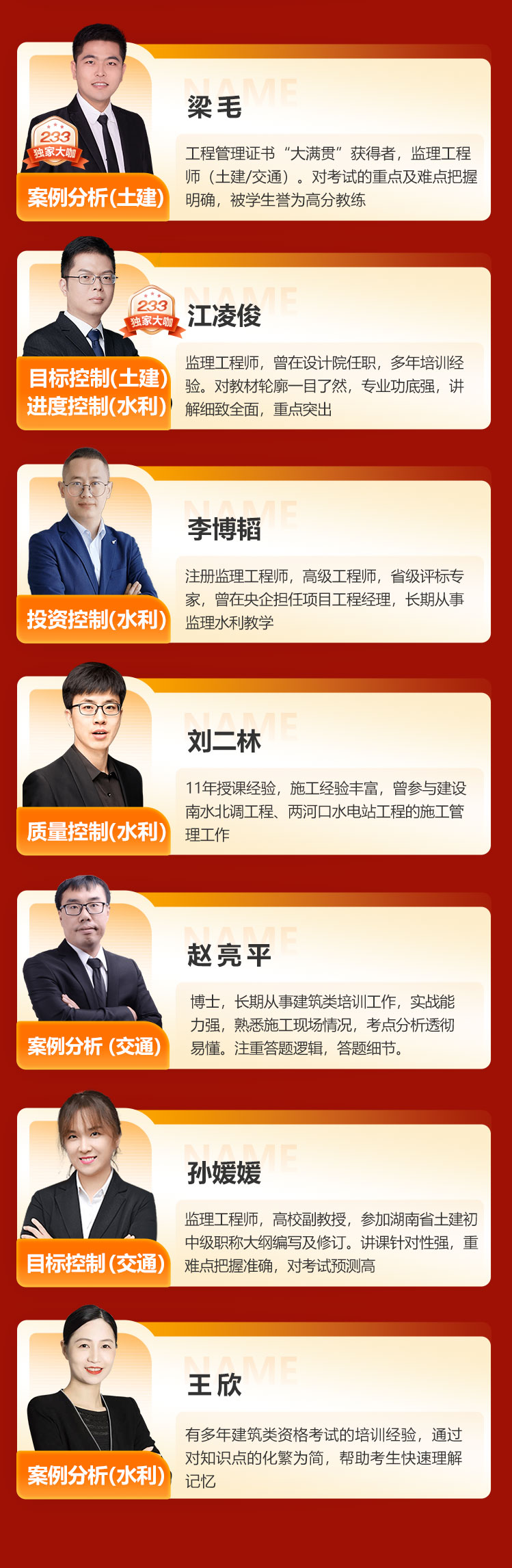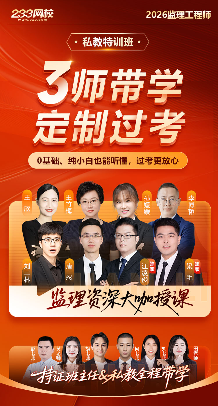 1. 2026年监理工程师单科私教特训班中本考季及后续年份的具体服务项目和细节以乙方官方网站(www.233.com )公布的2026年监理工程师单科私教特训班 招生方案为准,每考季可能会根据实际情况调整老师、课程、题库、服务等,乙方有权根据实际调整变更具体服务项目和细节。