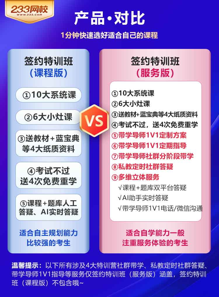 1. 2026年注安全科签约特训班(课程版)中本考季及后续年份的具体服务项目和细节以乙方官方网站(www.233.com )公布的2026年注安全科签约特训班(课程版) 招生方案为准,每考季可能会根据实际情况调整老师、课程、题库、服务等,乙方有权根据实际调整变更具体服务项目和细节。