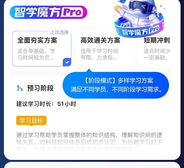 3. 产品特点:在协议约定的期限内,学员如符合协议相关条款规定,将享受3次免费重学的学习保障。