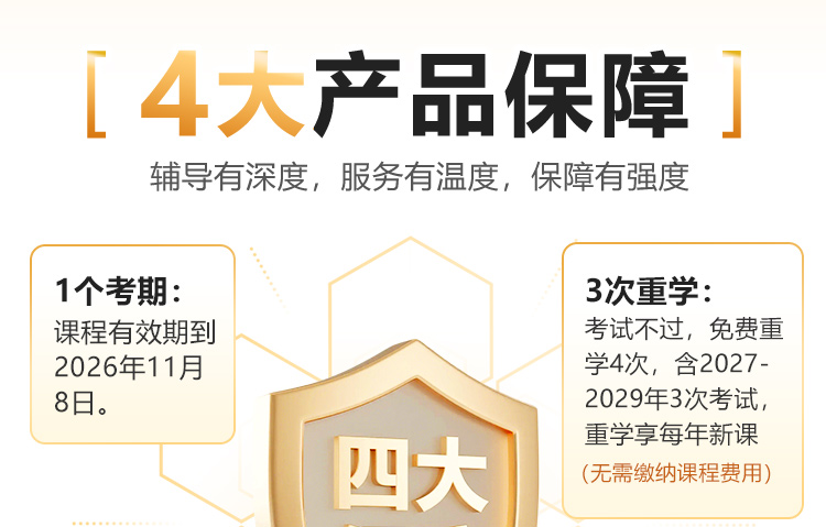 3. 产品特点:在协议约定的期限内,学员如符合协议相关条款规定,将享受3次免费重学的学习保障。
