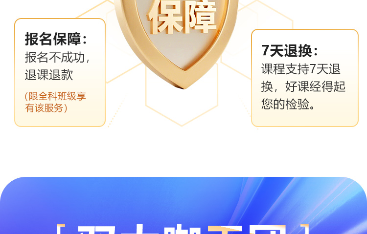 3. 产品特点:在协议约定的期限内,学员如符合协议相关条款规定,将享受报名不成功退费,3次免费重学的学习保障。