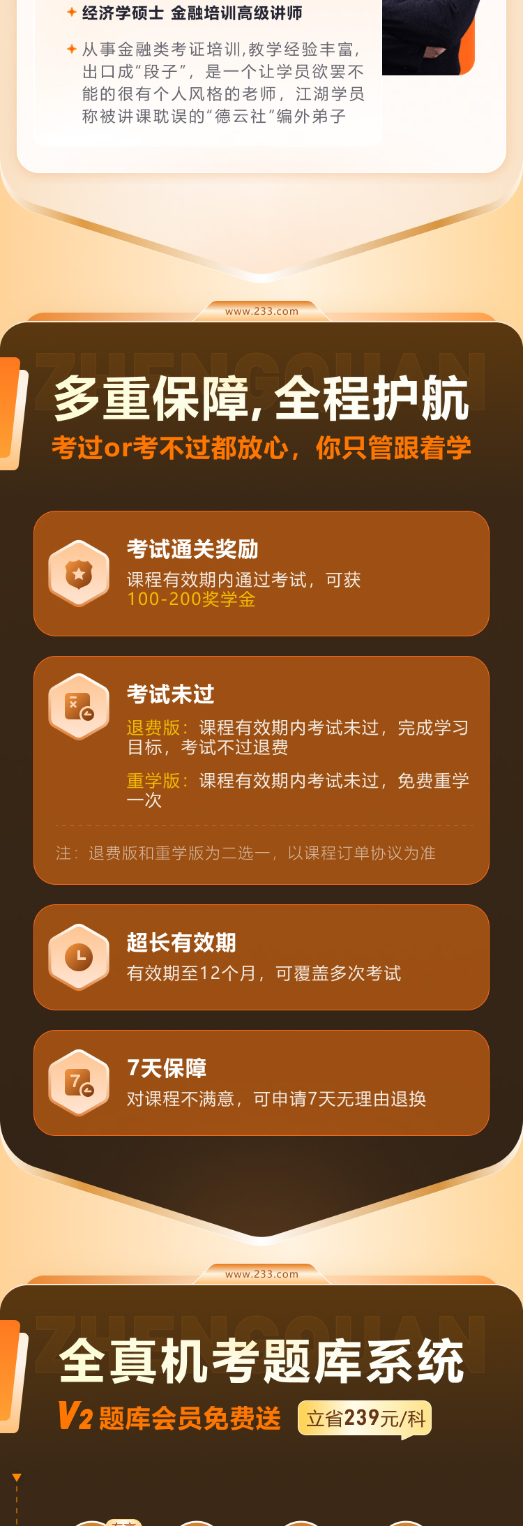 1. 2026年证券专项单科高端班(退费版) 中本考季及后续年份的具体服务项目和细节以乙方官方网站(www.233.com )公布的2026年证券专项单科高端班(退费版) 招生方案为准,每考季可能会根据实际情况调整老师、课程、题库、服务等,乙方有权根据实际调整变更具体服务项目和细节。