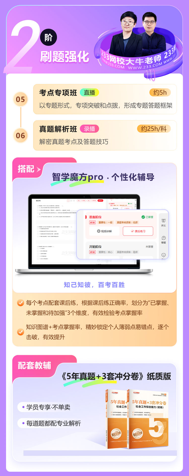 1. 2026初级社会工作者全科优胜班中本考季及后续年份的具体服务项目和细节以乙方官方网站(www.233.com )公布的2026初级社会工作者全科优胜班 招生方案为准,每考季可能会根据实际情况调整老师、课程、题库、服务等,乙方有权根据实际调整变更具体服务项目和细节。