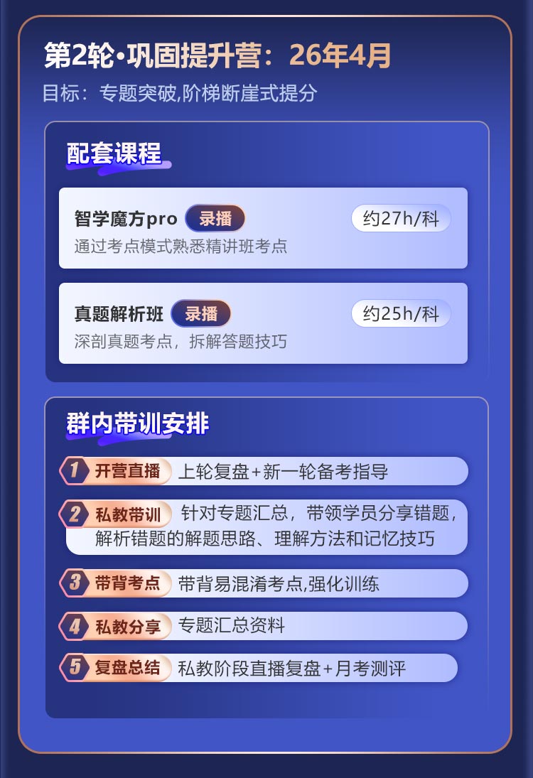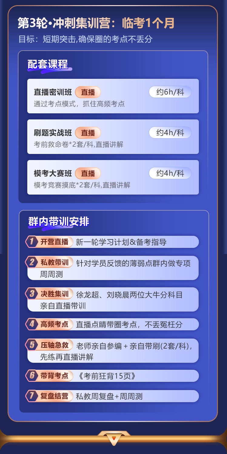 3. 产品特点:在协议约定的期限内,学员如符合协议相关条款规定,将享受报名不成功退费,考试不过退款,1次免费重学的学习保障。(注意:一次免费重学、考试不过退费服务二选一:即享受重学服务后不再享受退费服务,享受退费服务后不再享受重学服务 )