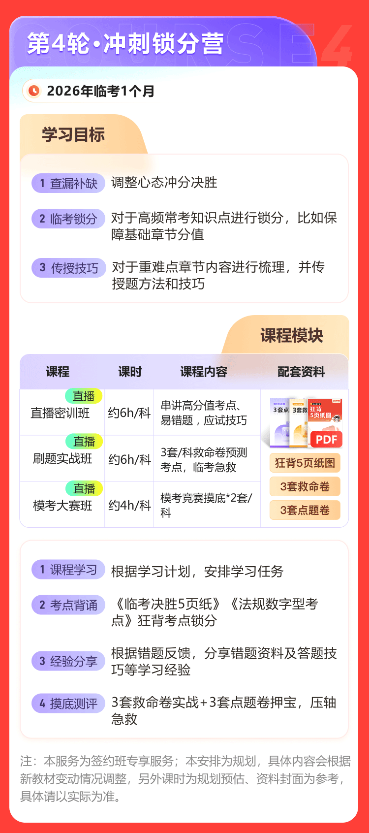 1. 2026年中级社会工作者全科签约特训班(重学版)【2个考期】中本考季及后续年份的具体服务项目和细节以乙方官方网站(www.233.com )公布的2026年中级社会工作者全科签约特训班(重学版)【2个考期】 招生方案为准,每考季可能会根据实际情况调整老师、课程、题库、服务等,乙方有权根据实际调整变更具体服务项目和细节。