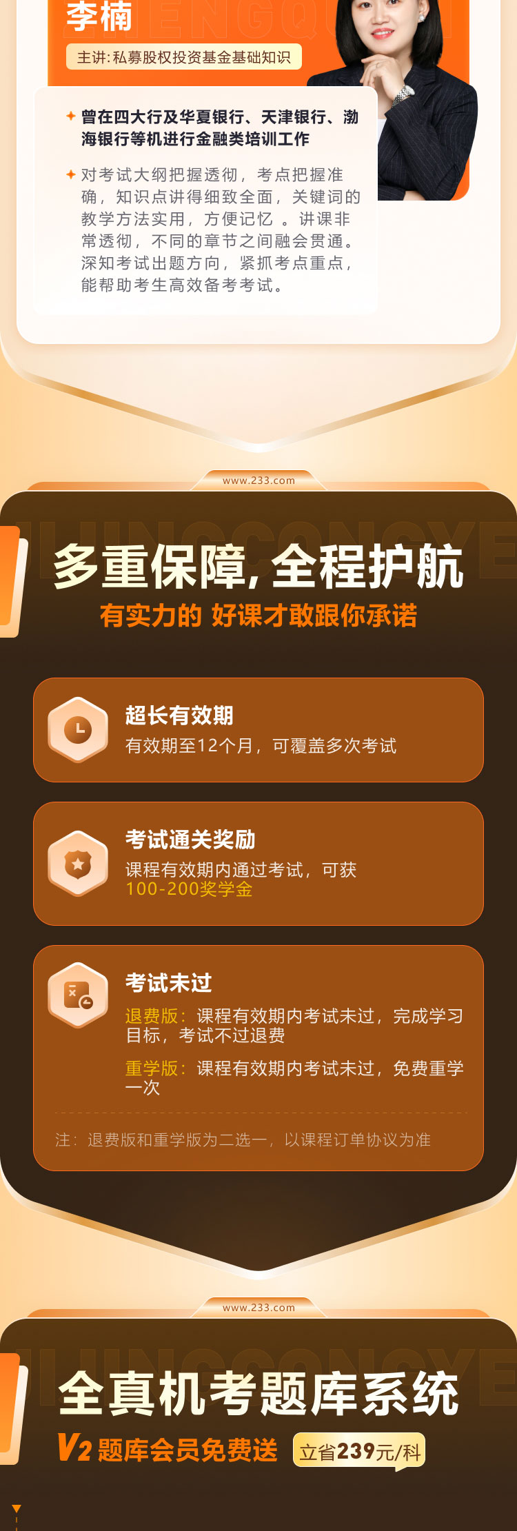 注:乙方每年会根据实际情况调整老师、课程、题库、服务等,在重学服务期间,若2026年基金从业两科高端班(重学版)下线,则开设新一年同等级别的班级进行重学。