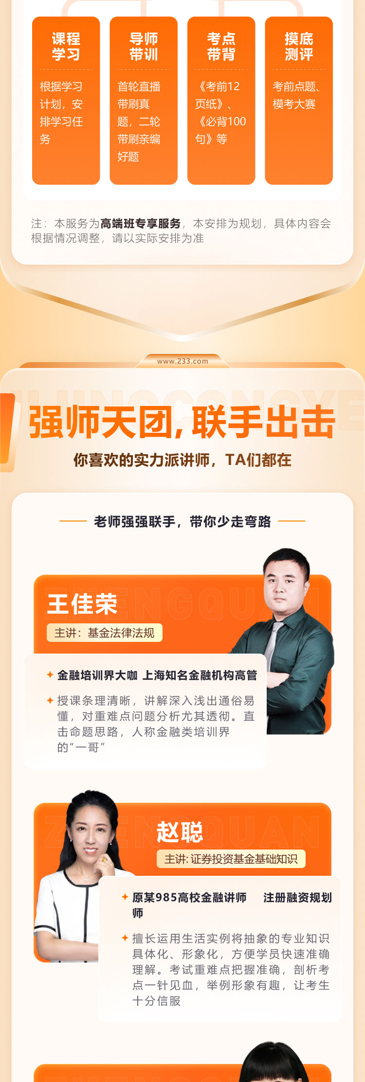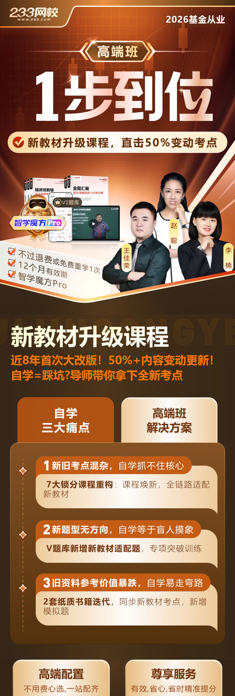 1. 2026年基金从业单科高端班(重学版)中本考季及后续年份的具体服务项目和细节以乙方官方网站(www.233.com )公布的2026年基金从业单科高端班(重学版) 招生方案为准,每考季可能会根据实际情况调整老师、课程、题库、服务等,乙方有权根据实际调整变更具体服务项目和细节。