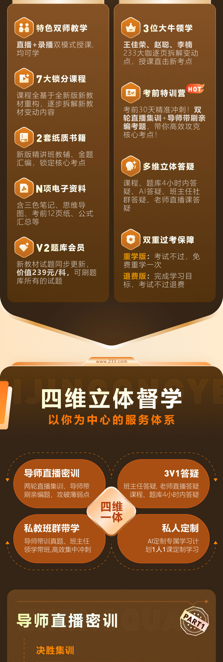 3. 产品特点:在协议约定的期限内,学员如符合协议相关条款规定,将享受考试不过退款的学习保障。