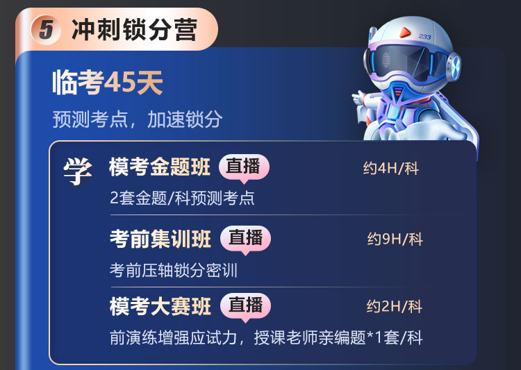 3. 产品特点:在协议约定的期限内,学员如符合协议相关条款规定,将享受报名不成功退费,3次免费重学的学习保障。
