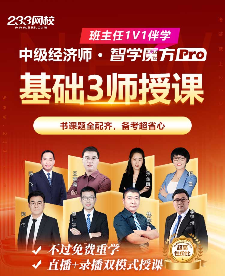 1. 中级经济师单科智学魔方Pro班 中本考季及后续年份的具体服务项目和细节以乙方官方网站(www.233.com )公布的中级经济师单科智学魔方Pro班 招生方案为准,每考季可能会根据实际情况调整老师、课程、题库、服务等,乙方有权根据实际调整变更具体服务项目和细节。