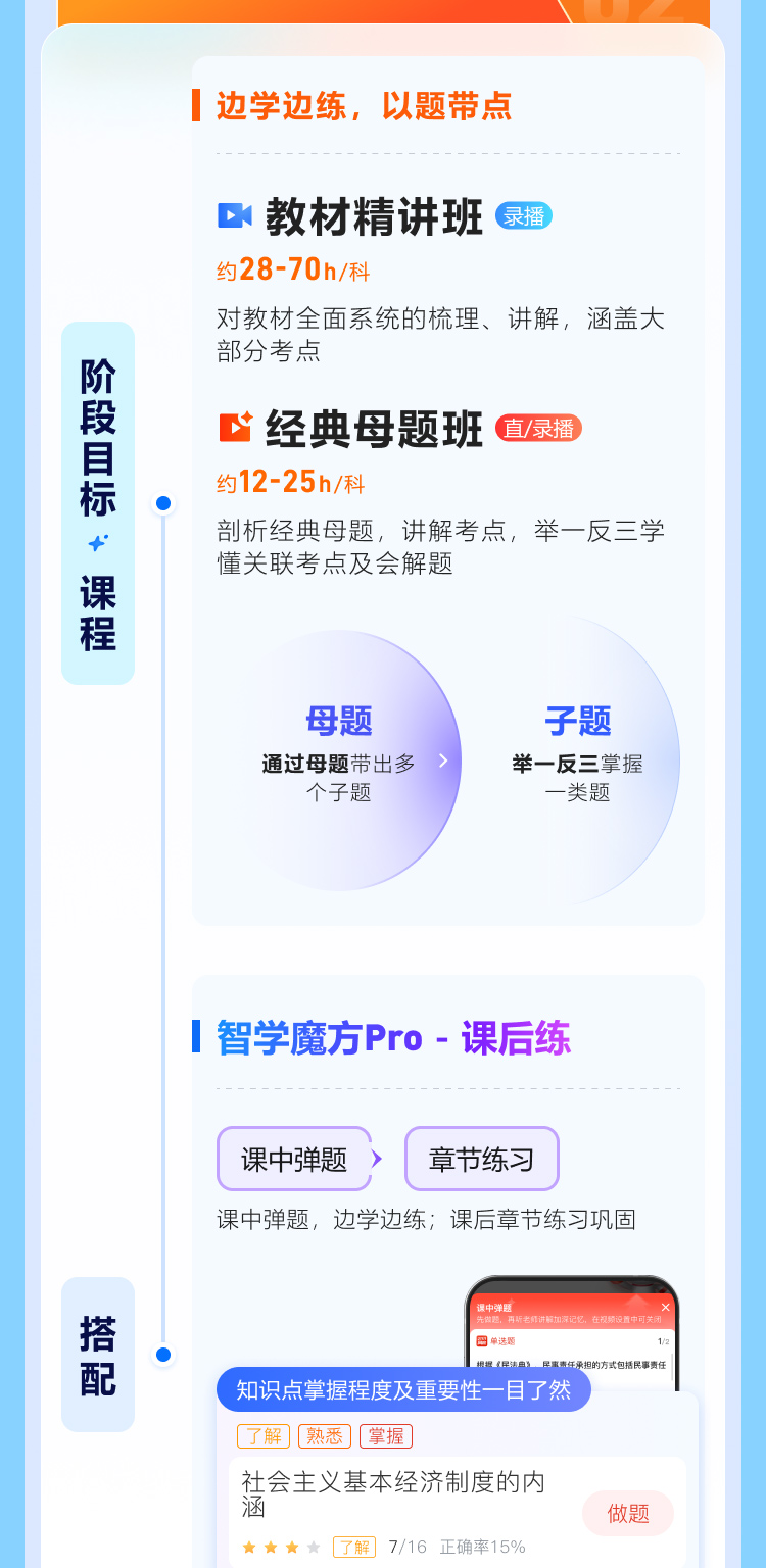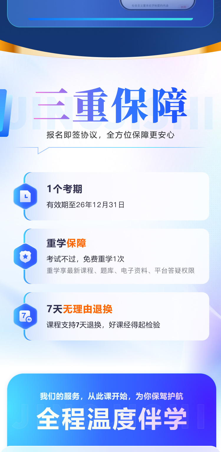 3. 产品特点:在协议约定的期限内,学员如符合协议相关条款规定,将享受1次免费重学的学习保障。