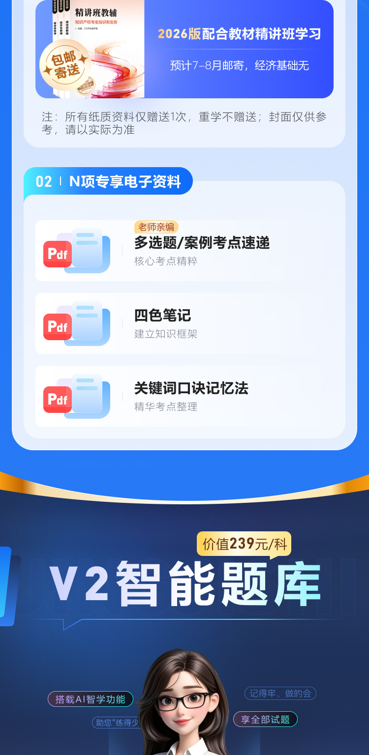 5.3 纸质资料服务,重学阶段不再赠送纸质资料,所有包邮寄送的纸质资料仅送1次。